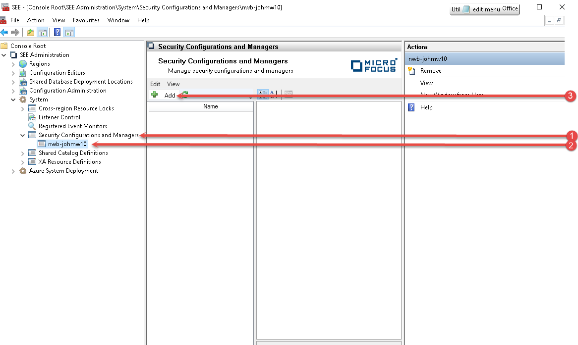 Expand the Security and Configuration Managers node (1).