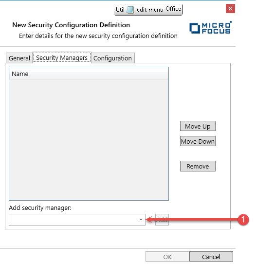 1. Select the Security manager required to participate in this configuration.