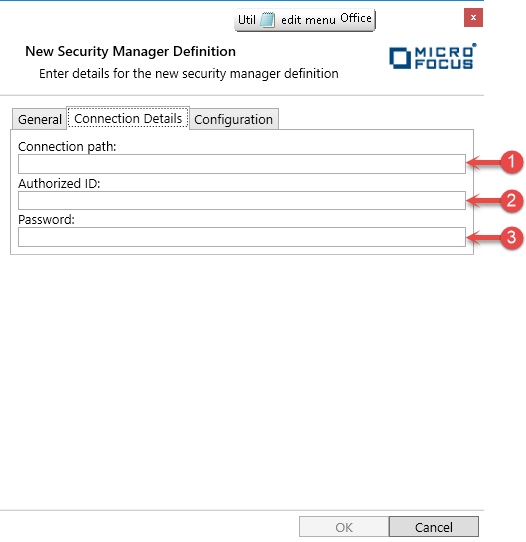 Click the Security Manager Definition menu item (1).