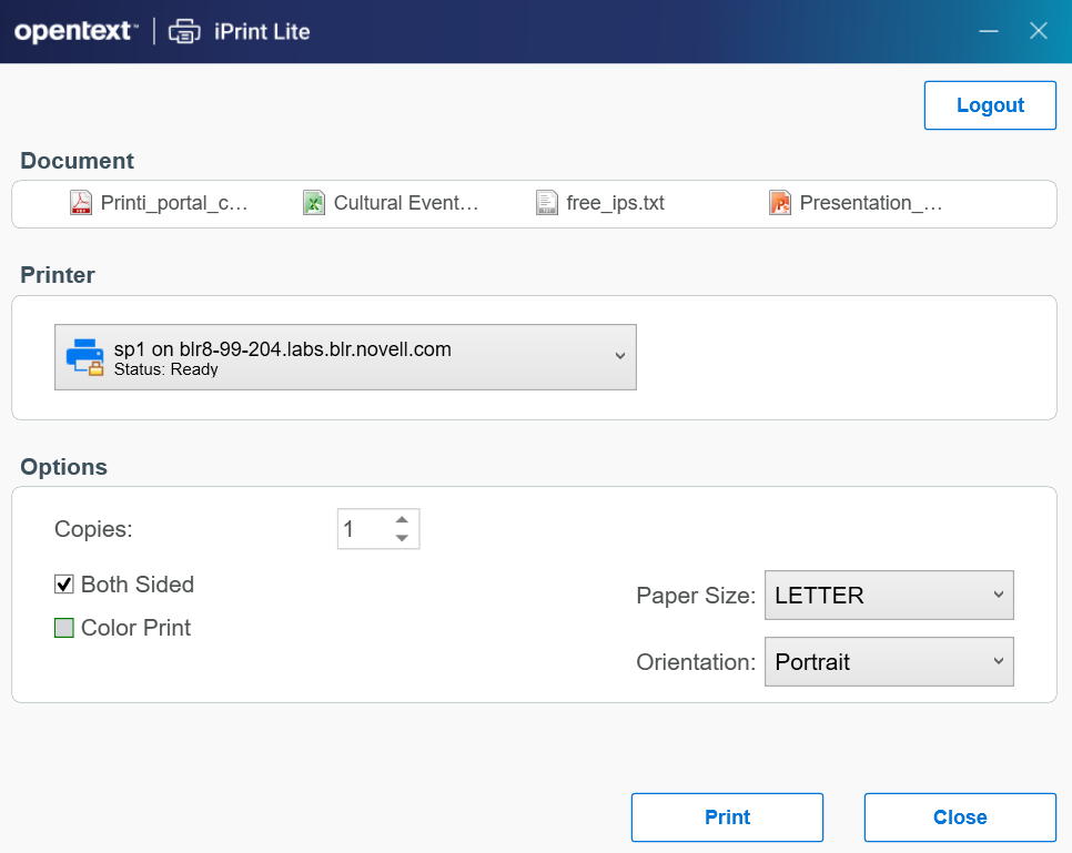 1. Right-click a file or files, then select iPrint, an iPrint dialog is displayed.