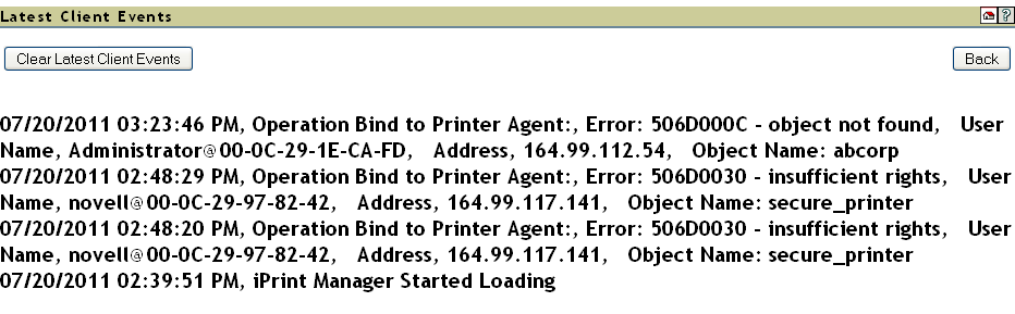 Figure 3-3 Latest Client Events