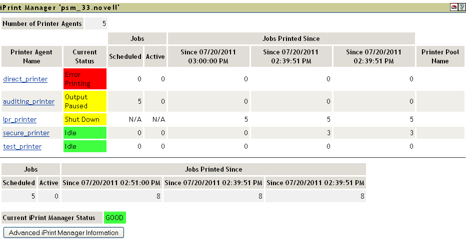 In this example, the iPrint Manager is not showing any errors.
