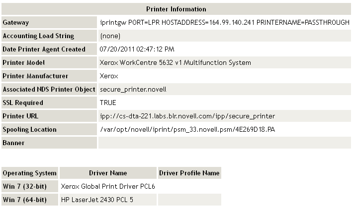 On the Printer Agent page of the iPrint Manager Health Monitor, scroll down and look at the printer drivers that are being used.