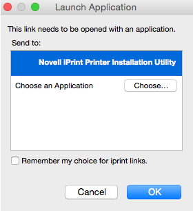 Select OES iPrint Printer Installation Utility in the Launch Application dialog box, then click OK to proceed with the installation of the printer.