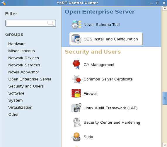 Click Group > Open Enterprise Server > OES Install and Configuration.