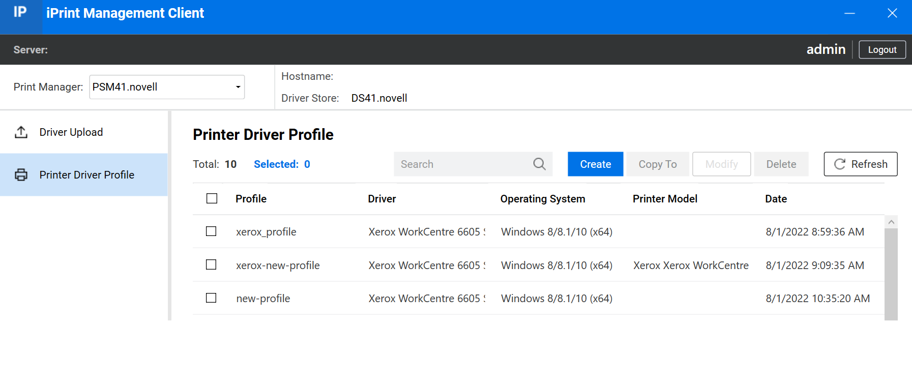 When creating a printer driver profile, you work directly with a platform-specific printer driver; so you should create and modify profiles from the same operating-specific platform as the printer driver. For example, to create or modify a Windows 10 printer driver profile, you must access iPrint Management Client and complete the task from a Windows 10 workstation.