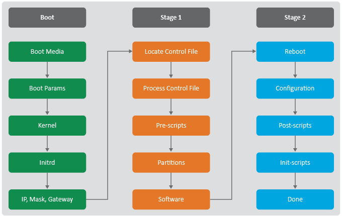 In Stage 2 the system is configured and post-scripts and init-scripts, if any, are executed.