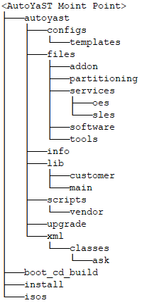 The purpose of the directories underneath /data/autoyast is explained in the following table.