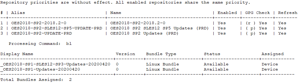 Figure 5-2 Zypper and ZCM Repositories After Upgrade to OES 2018 SP2