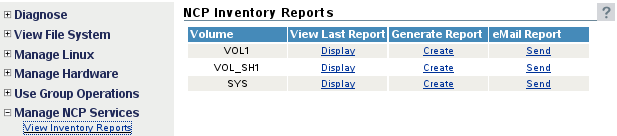 Go to the Manage NCP Services > Volume Inventory Reports page.