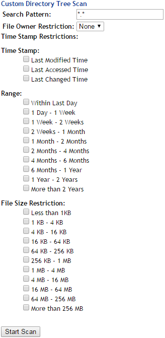 Select the check boxes desired to customize the report by Time Stamp or File Size restrictions.