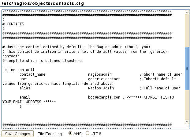Edit Nagios object contact config file |