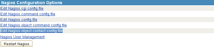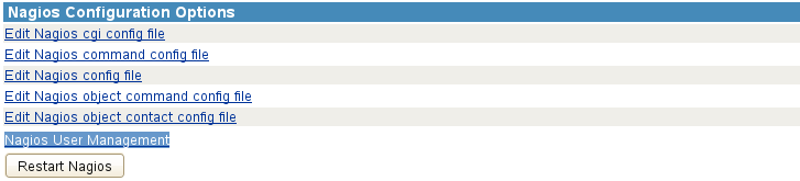Under Nagios Configuration Options, click Restart Nagios.