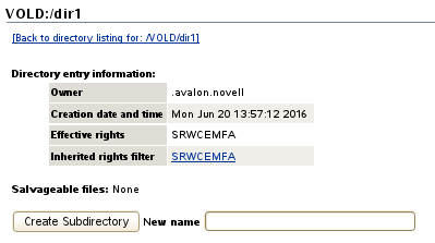 On the Directory list page, browse to the /media/nss/<volume_name> directory and through its subdirectories to the directory, then click the Directory Information icon