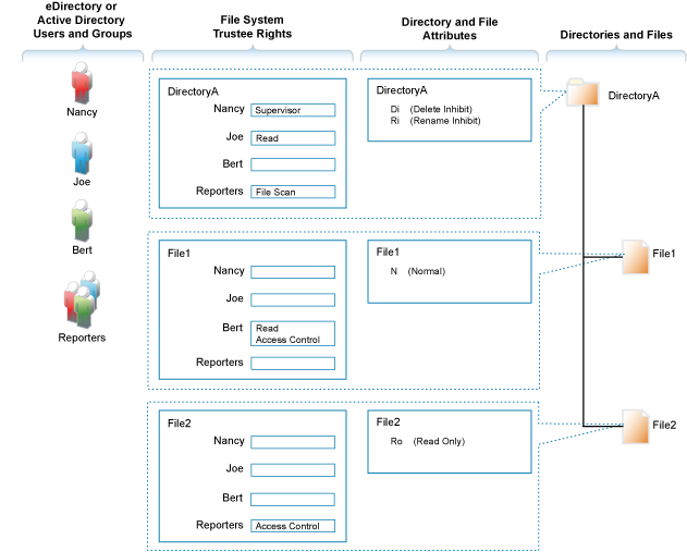 Figure 14-2 Directory and File Access under the NetWare Access Control Model