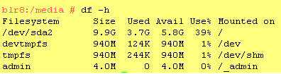The df -h command lists the device name of the root partition. In the following example, the root partition to write down is /dev/sda2 (mounted as /) with 5.8 GB available.