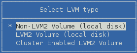 Select Non-LVM2 Volume from the following volume types to create a native Linux POSIX volume, then press Enter.