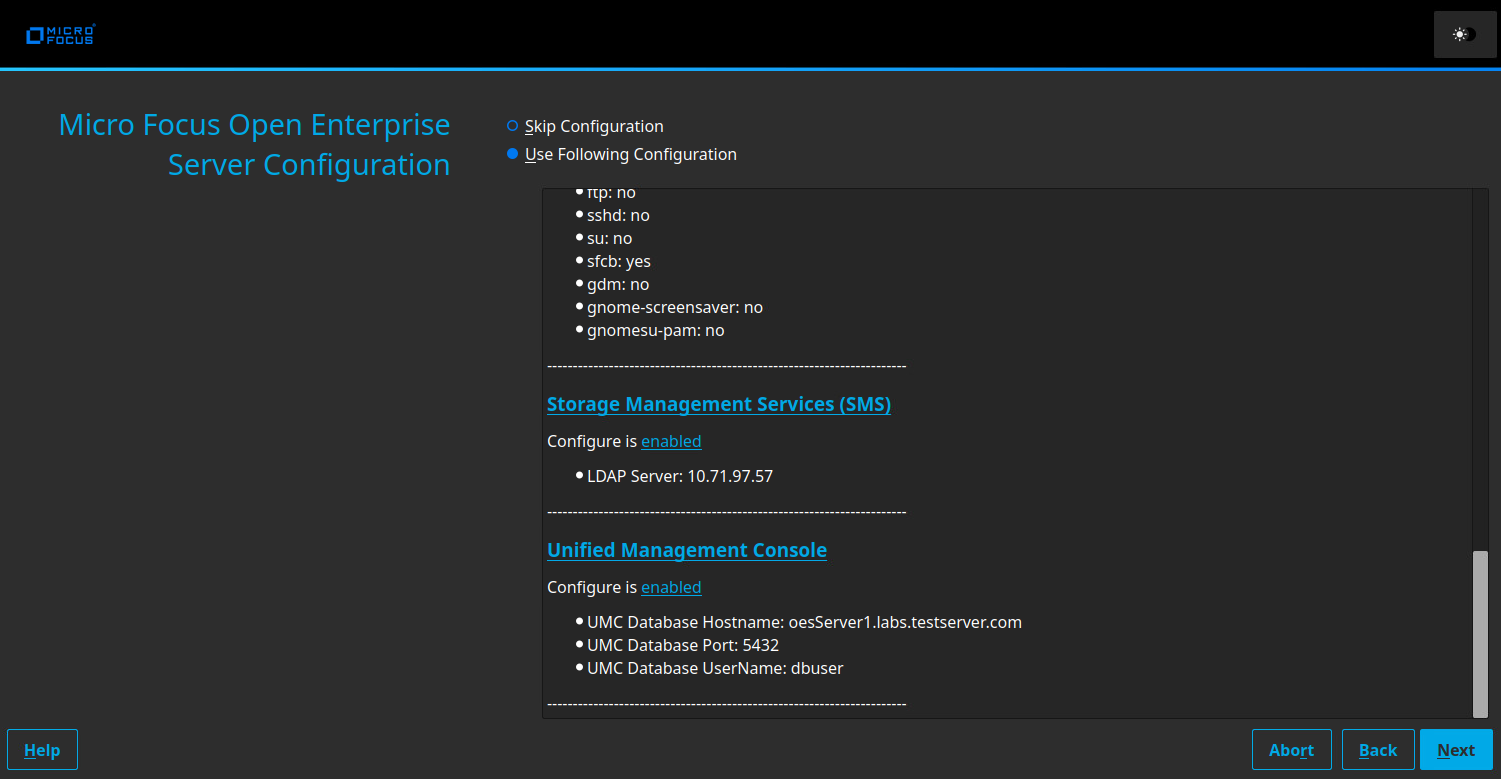 NOTE:The OES eDirectory is automatically selected.