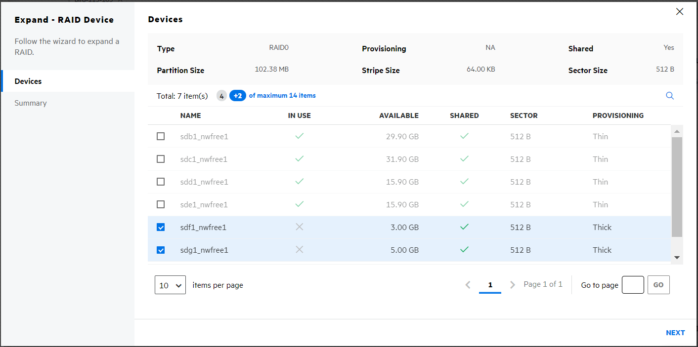 The wizard lets you select the partitions with free space to meet the RAID's current partition size and are not members of the RAID.