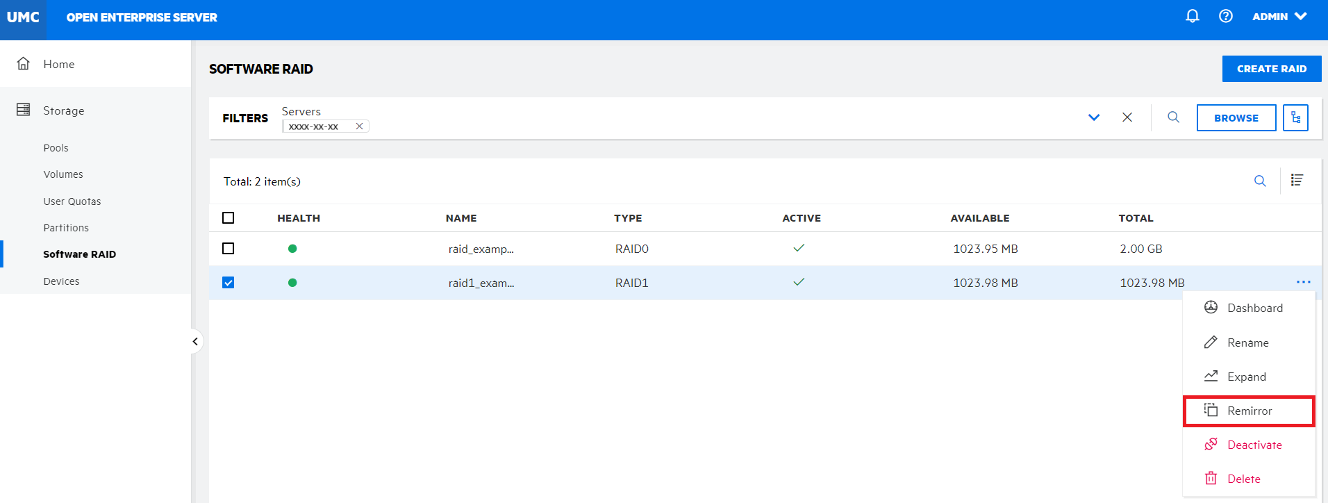Storage > Software RAID.