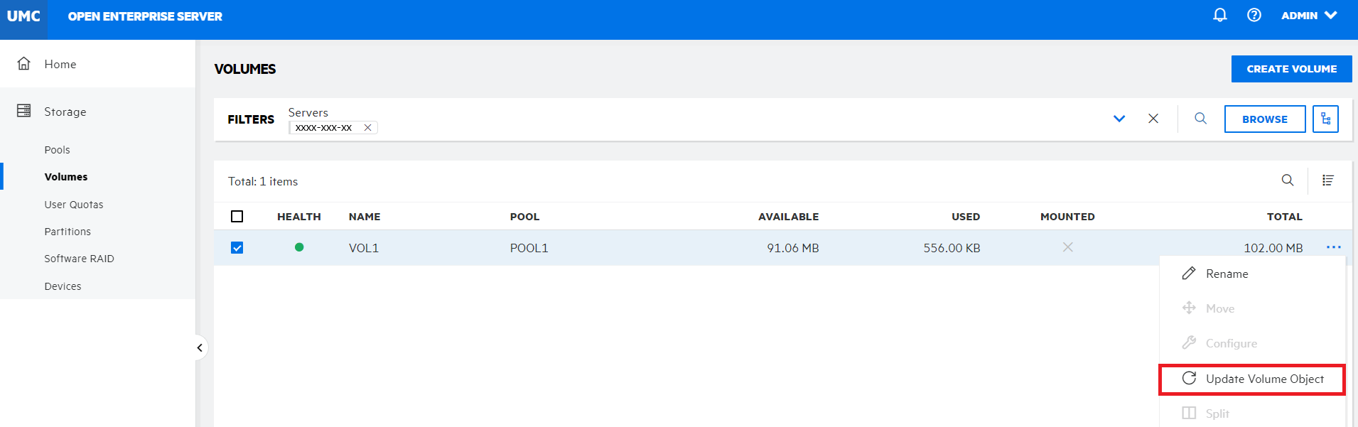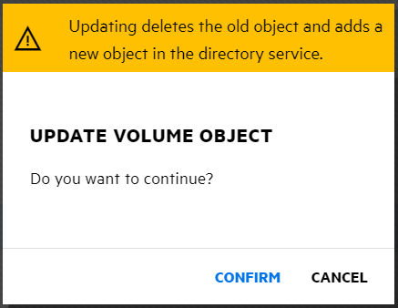 Click CONFIRM to update the volume object of the selected volume.