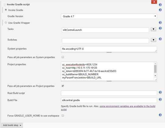 sh "${path}/bin/gradle :silkCentralLaunch -b ${scFile} " + scTriggerInfo