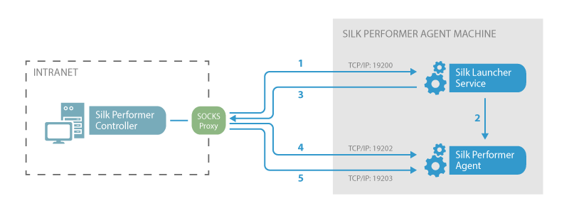 1. Controller opens initial connection to Silk Launcher Service through a SOCKS proxy.