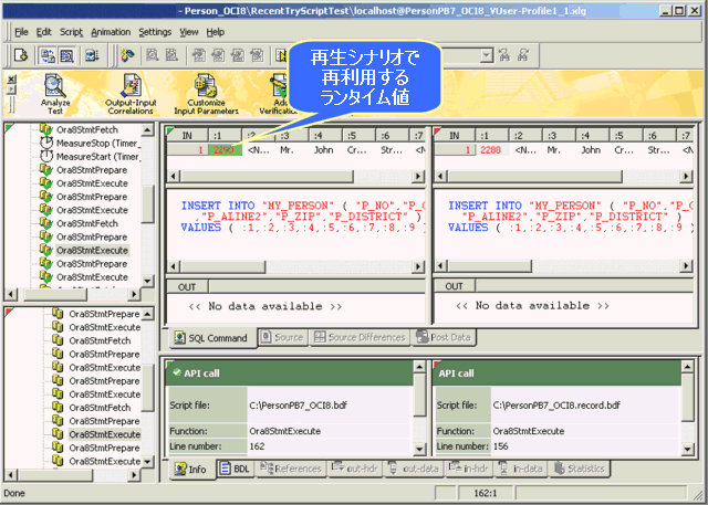動的な値が別の SQL コマンドまたはストアド プロシージャの入力値として出現している場合、そのステートメント/プロシージャ名が 出力パラメータ値を次の呼び出しの入力として使用する ウィンドウに表示されます。 TrueLog Explorer は、後でこのような呼び出しの入力パラメータ値を出力パラメータ値で置き換えるための変数を作成できます。